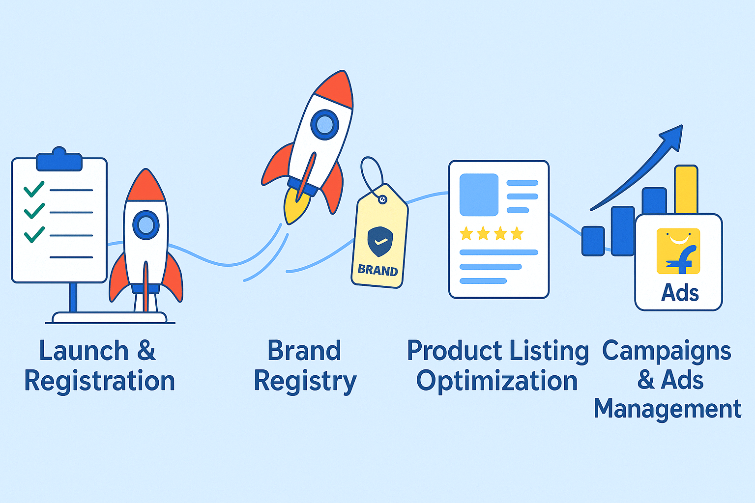 WKPC is your strategic partner for Flipkart marketplace success. From account setup to advanced performance marketing, we empower brands—whether new or established—to thrive on Flipkart. With Flipkart Marketplace Management Services in Faridabad and Delhi NCR, we deliver optimized product listings, seamless review systems, and growth-driven campaigns to ensure your brand stands out and sells more.